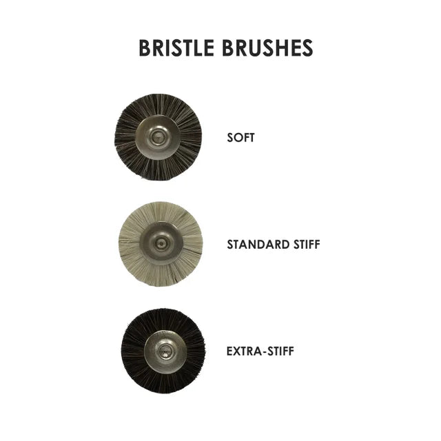 Ideales para limpieza y pulido de acrílicos de dentaduras. Así como también para la limpieza de los espacios interproximales después del desflasado de dentaduras y para aplicaciones generales de pulido en el laboratorio.